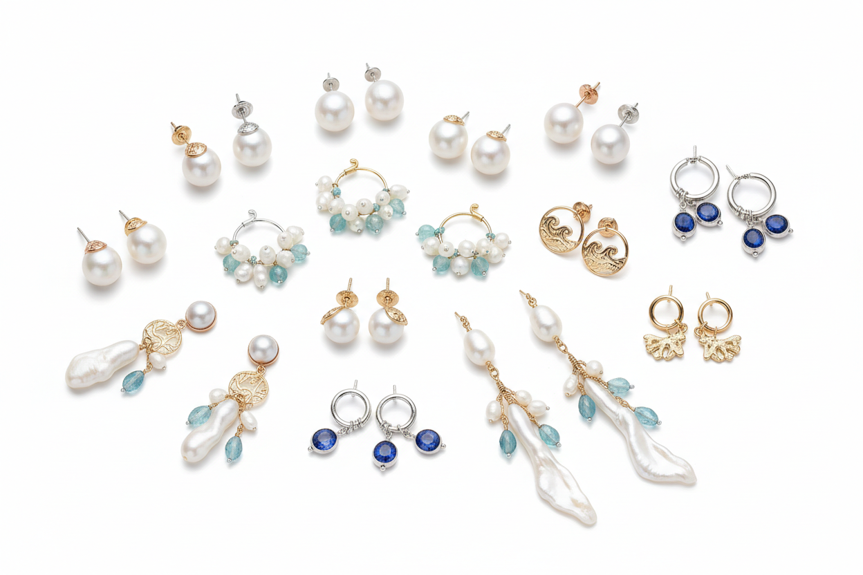 Ohrringe Monstera-Blatt mit bunten Kristallperlen - Gold